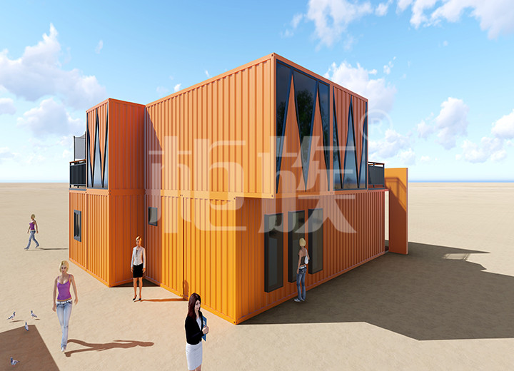 彩色外觀引人注目,集裝箱的隨意組合功能可以根據需要延展空間使用面積。一層可供展品擺放,二層陽臺可供休息娛樂。