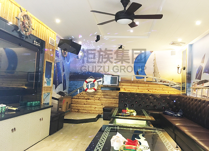 外觀弧形線條很好的搭配了音樂元素,凸顯集裝箱個性化設計特點。內部唱歌、休閑設施齊全。